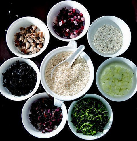 臘八粥在古時(shí)是用紅小豆、糯米煮成,后來(lái)材料逐漸增多。南宋人周密著《武林舊事》說(shuō):“用胡桃、松子、乳蕈、柿蕈、柿栗之類做粥,謂之‘臘八粥’”。至今我國(guó)江南、東北、西北廣大地區(qū)人民仍保留著吃臘八粥的習(xí)俗,廣東地區(qū)已不多見。所用材料各有不同,多用糯米、紅豆、棗子、栗子、花生、白果、蓮子、百合等煮成甜粥。也有加入桂圓、龍眼肉、蜜餞等同煮的。冬季吃一碗熱氣騰騰的臘八粥,既可口有營(yíng)養(yǎng),確實(shí)能增福增壽。