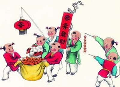 那么"年"究竟是怎么樣來(lái)的呢?民間主要有兩種說(shuō)法:一種說(shuō)的是,古時(shí)候,有一種叫做"年"的兇猛怪獸,每到臘月三十,便竄村挨戶(hù),覓食人肉,殘害生靈。有一個(gè)臘月三十晚上,"年"到了一個(gè)村莊,適逢兩個(gè)牧童在比賽牛鞭子。"年"忽聞半空中響起了啪啪的鞭聲,嚇得望風(fēng)而逃。它竄到另一個(gè)村莊,又迎頭望到了一家門(mén)口曬著件大紅衣裳,它不知其為何物,嚇得趕緊掉頭逃跑。后來(lái)它又來(lái)到了一個(gè)村莊,朝一戶(hù)人家門(mén)里一瞧,只見(jiàn)里面燈火輝煌,刺得它頭昏眼花,只好又夾著尾巴溜了。人們由此摸準(zhǔn)了"年"有怕響,怕紅,怕光的弱點(diǎn),便想到許多抵御它的方法,于是逐漸演化成今天過(guò)年的風(fēng)俗。另一種說(shuō)法是,我國(guó)古代的字書(shū)把"年"字放禾部,以示風(fēng)調(diào)雨順,五谷豐登。由于谷禾一般都是一年一熟。所"年"便被引申為歲名了。我國(guó)古代民間雖然早已有過(guò)年的風(fēng)俗,但那時(shí)并不叫做春節(jié)。因?yàn)槟菚r(shí)所說(shuō)的春節(jié),指的是二十四節(jié)氣中的"立春"。南北朝則把春節(jié)泛指為整個(gè)春季。據(jù)說(shuō),把農(nóng)歷新年正式定名為春節(jié),是辛亥革命后的事。由于那時(shí)要改用陽(yáng)歷,為了區(qū)分農(nóng)、陽(yáng)兩節(jié),所以只好將農(nóng)歷正月初一改名為"春節(jié)"。
