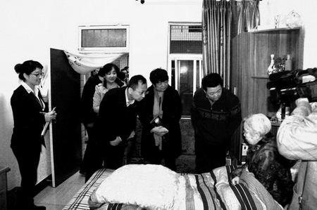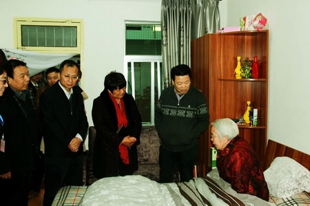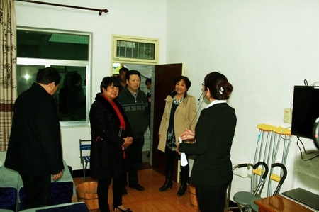 中心負(fù)責(zé)人李玲引領(lǐng)省、市局領(lǐng)導(dǎo)逐一巡視全中心并詳細(xì)介紹中心管理模式及運(yùn)轉(zhuǎn)現(xiàn)狀。王副市長(zhǎng)一行分別視察了中心設(shè)施設(shè)備、老人居室、餐廳后廚、洗衣洗浴室、醫(yī)療保健室、健身理療室、棋牌娛樂室、書法繪畫室及戶外活動(dòng)場(chǎng)地。在視察過程中,王副市長(zhǎng)親切的與中心老人交談,當(dāng)?shù)弥行脑诠┡矫孢未與其他部門談妥之時(shí),立即指示政府有關(guān)部門著手此事,溝通協(xié)調(diào)、盡快落實(shí),及時(shí)的將暖氣供到中心,讓老人度過一個(gè)溫暖的冬天。