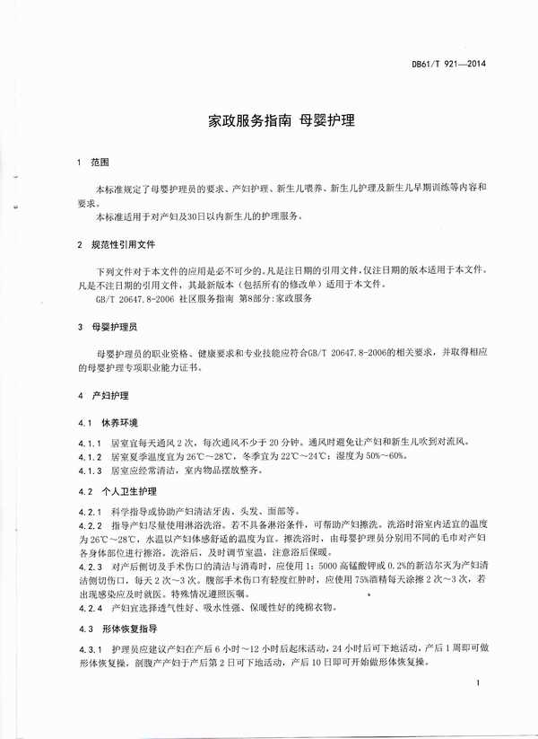 博思特陜西省地方標(biāo)準(zhǔn)家政服務(wù)指南 母嬰護(hù)理