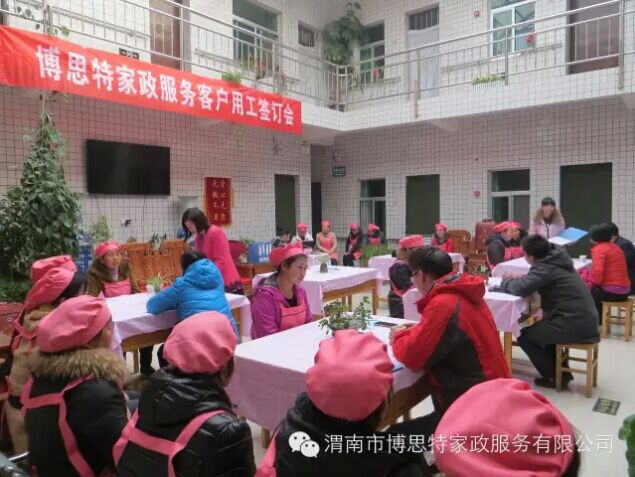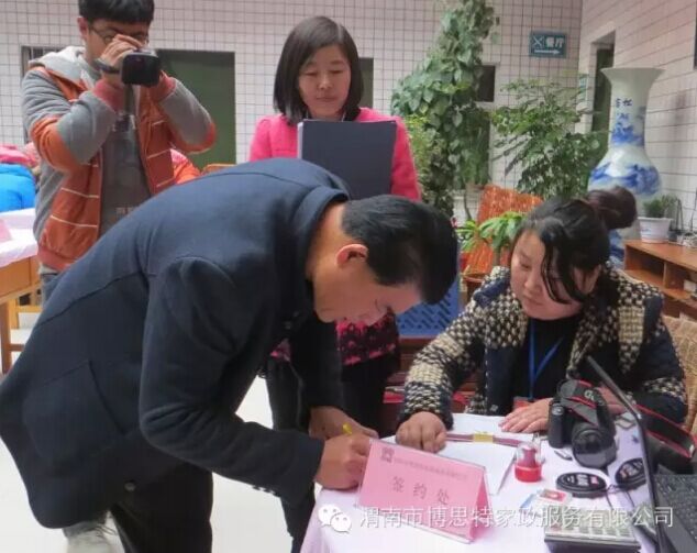 2015年11月28日 渭南市博思特家政服務(wù)有限公司迎來2015年第四季度客戶用工簽訂會。渭南市博思特集團(tuán)旗下博思特家政服務(wù)有限公司、博思特技能培訓(xùn)學(xué)校圍繞政府和社會工作大局,大力實(shí)施再就業(yè)工程,扶持婦女創(chuàng)業(yè)、再就業(yè)工作!安┧继亍绷⒆惴⻊(wù),抓規(guī)范管理,實(shí)現(xiàn)了組織網(wǎng)絡(luò)化、培訓(xùn)系列化、管理規(guī)范化、內(nèi)容多樣化、服務(wù)特色化;“博思特”以信益和質(zhì)量取勝,家庭知曉率、市場占有率和再就業(yè)率明顯提高。本次簽訂會是“博思特”第四季度客戶用工簽訂會。