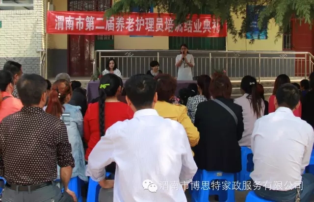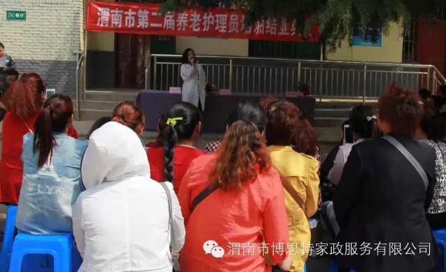 2016年渭南市第二屆養(yǎng)老護(hù)理員結(jié)業(yè)篇章:    渭南市家庭服務(wù)業(yè)協(xié)會秘書長講話片段:  當(dāng)前我國人口老齡化不斷加快,養(yǎng)老服務(wù)供需矛盾日益突出,養(yǎng)老服務(wù)形勢嚴(yán)峻、任務(wù)艱巨。習(xí)近平書記在十八屆五中全會上強(qiáng)調(diào),我國人口老齡化態(tài)勢明顯,2014年60歲以上人口占總?cè)丝诘谋戎匾呀?jīng)超過15%,老年人口比重高于世界平均水平,對我國人口均衡發(fā)展和人口安全提出了新的挑戰(zhàn)。全會通過的《十三五規(guī)劃的建議》明確提出,要“積極開展應(yīng)對人口老齡化的行動,全面放開養(yǎng)老服務(wù)市場,通過購買服務(wù)、股權(quán)合作等方式支持各類市場主體增加養(yǎng)老服務(wù)和產(chǎn)品供給”。這為我們應(yīng)對人口老齡化、開展養(yǎng)老服務(wù)工作、推動養(yǎng)老服務(wù)業(yè)健康發(fā)展,做出了頂層設(shè)計(jì)和戰(zhàn)略部署。 2015年11月18日,國務(wù)院發(fā)布《關(guān)于推進(jìn)醫(yī)療衛(wèi)生與養(yǎng)老服務(wù)相結(jié)合的指導(dǎo)意見》,明確提出,要將康復(fù)、護(hù)理人才作為急需緊缺人才納入國家相關(guān)培訓(xùn)規(guī)劃,加強(qiáng)專業(yè)技能培訓(xùn)。我市老齡委推舉的養(yǎng)老護(hù)理員培訓(xùn)班是落實(shí)《意見》精神的重要舉措,是博思特集團(tuán)2016年實(shí)施“扶貧攻堅(jiān)”“關(guān)愛失能老人行動”的重要組成部分。舉辦養(yǎng)老護(hù)理員培訓(xùn)班,目的就是要通過對基層養(yǎng)老機(jī)構(gòu)的護(hù)理員進(jìn)行系統(tǒng)、科學(xué)的培訓(xùn),切實(shí)提高一線養(yǎng)老護(hù)理員的專業(yè)水平、技能水平和綜合素質(zhì),加快建設(shè)一支規(guī)模宏大、素質(zhì)較高的養(yǎng)老護(hù)理員隊(duì)伍。